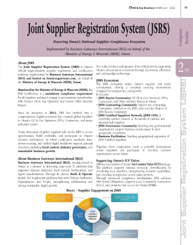 The Joint Supplier Registration System (JSRS) is Oman’s BGI is the architect and operator of the JSRS platform, supporting