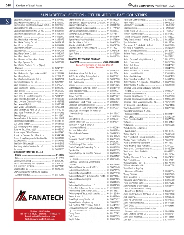 Schulz Piping Components Saudi Arabia ........ 013 8591897 Tameema International Trdg Co ..................... 013 8576463 Wali Projects Est. General Contracting ........... 013 8973456