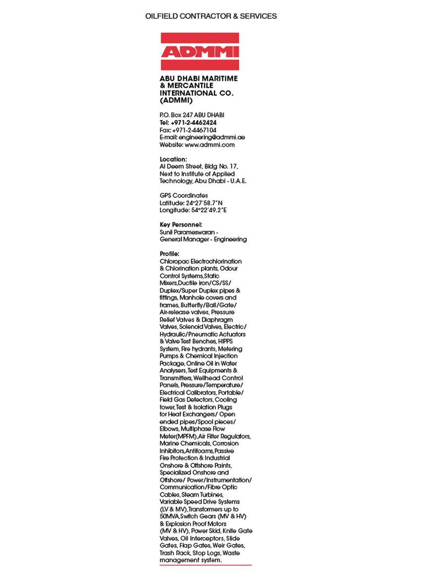 Location : Al Deem Street, Bldg. No. 17, Next to Institute of Applied Technology Key Personnel : Sunil Parameswaran - General ManagerEstablished in 1981, ADMMI is a 100% locally owned company providing full services distribution and local market knowledge for major international brands across a wide spectrum of products and services. In addition to a first class logistics operation that proactively manages the movement of product from factory to consumer, ADMMI has a keen strength in its marketing orientation. This is exemplified in ADMMI’s capabilities in market and consumer research, brand strategies, trade marketing and sales planning through to effective product promotion, point-of-sales and merchandising activity.