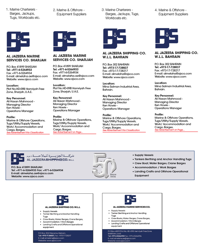 Marine & Offshore Operators, Tug/Utility/Supply Vessels, Work/Cargo/ Accommodation and Barges.