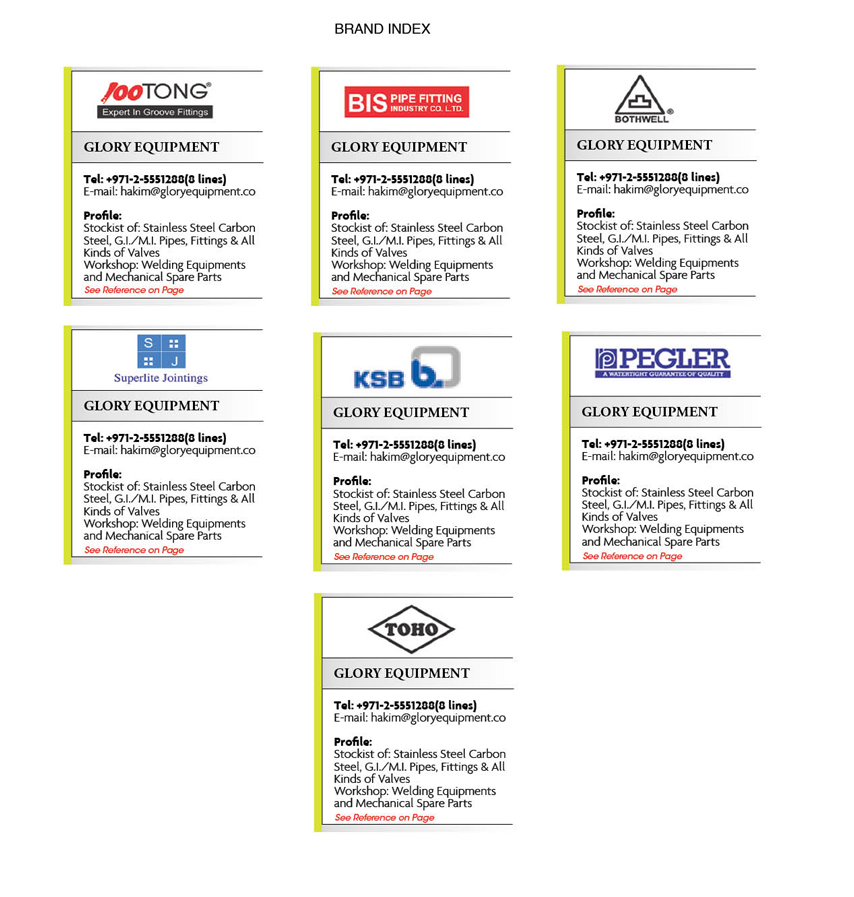 Stockist of: stainless steel carbon steel, G.I./M.I. pipes, fittings & all kinds of valves. Workshop: Welding equipments and mechanical spare parts