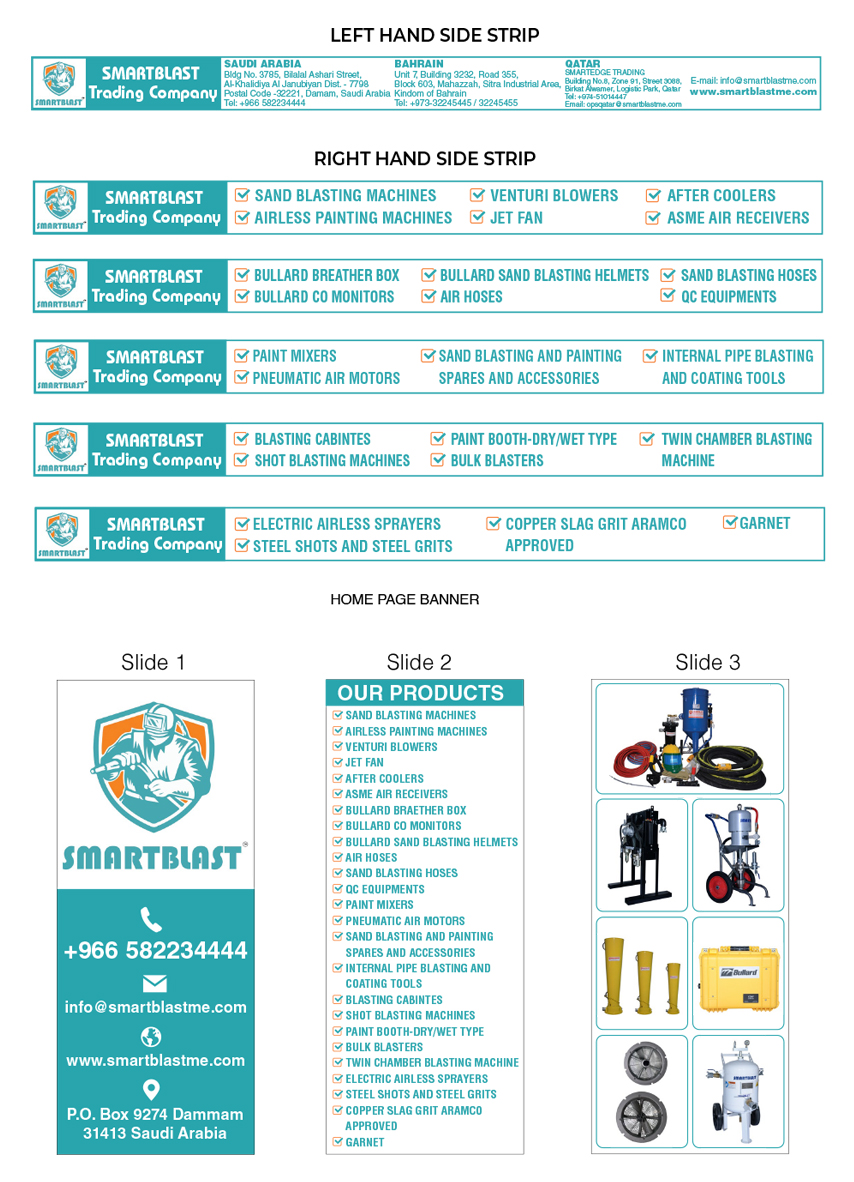 Location : Bldg. No. 3785, Bilal Al Ashari Streert Al Khalidiya Al Janubiyah DistSmartblast Trading Company was established and registered in the year 2003 with its main office in located a DAMMAM and the branch office at JEDDAH and RIYADH – Saudi Arabia, SMARTBLAST also operates its overseas branches in BAHRAIN and QATAR